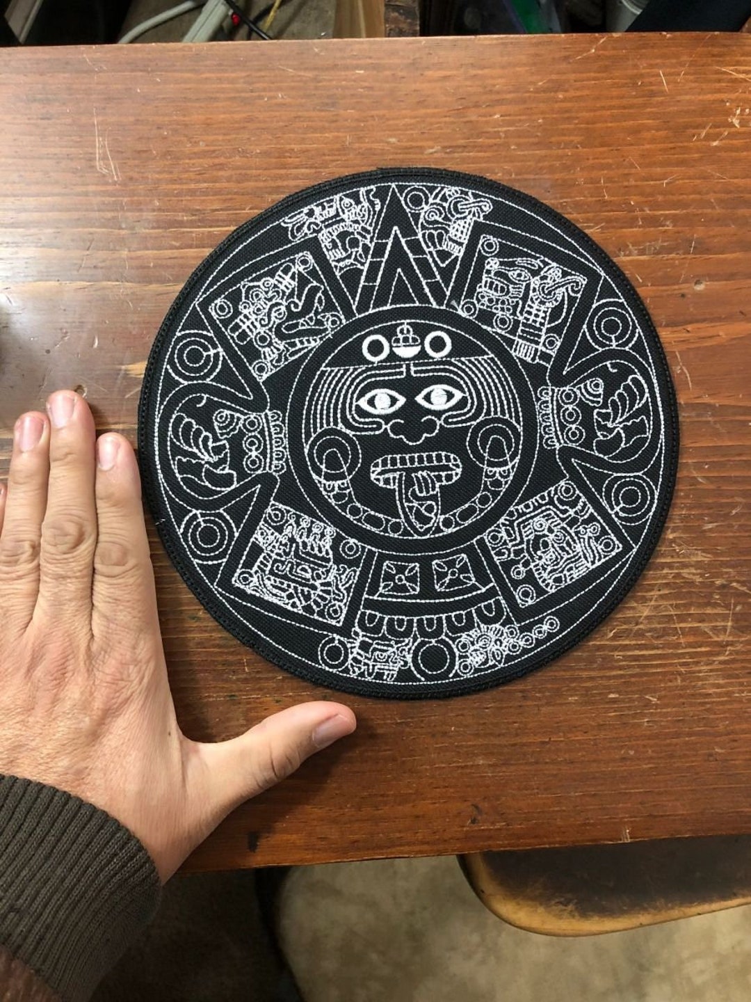 Large 8 5 Aztec Calendar Black And White Iron On Patch Etsy Singapore